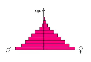Befolkningspyramiden kan beskrives efter sin fremtræden, idet der kan skelnes mellem voksende, stabile eller aftagende pyramider. En voksende befolkning vil således afspejle sig i form af meget store børnetal (svarende til store bredder for pyramidens fod, eksempelvis Afghanistan), en stabil befolkning med jævnt aftagende befolkning vil have næsten ideel pyramideform (eksempelvis Danmark i 1901)[1], en stabil befolkning med meget lav dødelighed vil have form som et tårn, idet befolkningen er næsten lige stor i alle aldersklasser og derfor først aftager brat i de højeste aldersklasser (se fx Frankrig), og endelig vil en aftagende befolkning vise sig ved, at pyramidens fod er smallere end ældre aldersklasser (se fx Tyskland i 2005).