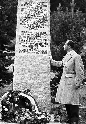 ![]() Mindesmærke i Beisfjord. Under den serbokroatiske tekst er en norsk indskrift. | |