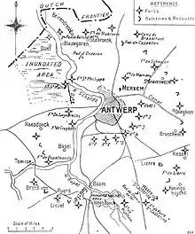 ![]() Belgiske artilleristillinger omkring Antwerpen |