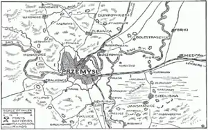 Den 24. september indledte general Radko Dimitriev, som havde kommandoen over den 3. russiske armé, belejringen af fæstningen. Dimitriev havde ikke tilstrækkeligt belejringsartilleri da han indledte belejringen, men i stedet for at vente på at overkommandoen sendte ham belejringsartiller besluttede han at gennemføre et storangreb på fæstningen inden en østrigsk undsætningsstyrke kunne nå frem. I tre dage angreb russerne, men opnåede intet andet end et tab på 40.000 mand. Mens dette foregik indledte general Paul von Hindenburg en offensiv mod Warszawa længere nordpå. I forbindelse med det tyske angreb mod Warszawa, anførte general Svetozar Boroevic von Bojna en undsætningsstyrke mod Przemyśl. Den 11. oktober hævede Dimitriev belejringen og trak sig tilbage over floden San. Conrad von Hötzendorf havde håb om at et kombineret angreb fra Boroevic's armé og garnisonen i Przemyśl kunne tilføje russerne et alvorligt slag.