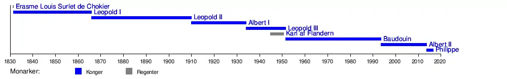 Siden 1831 har der været syv konger af belgierne og to regenter.