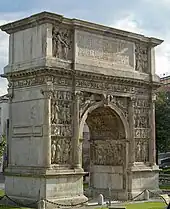 Mest kendt er Arco di Traiano, eller Trajans Ark, der blev opført mellem år 114 og 117 til ære for kejser Trajan. Den er 15,6 meter høj og 8,6 meter bred og rigt dekoreret. Der er også bevaret en bro fra romertiden, Ponte Leproso, der førte Via Appia over floden Sabato. Broen stammer oprindeligt fra den sannitiske periode, men blev grundlæggende renoveret i år 202. Endelig er der et velbevaret romersk amfiteater opført under kejser Hadrian i år 126 og senere udvidet under kejser Caracalla mellem år 200 og 210. Amfiteatret kunne rumme ca. 10.000 tilskuere.