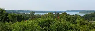![]() Vindmøllen i Benz, med kirken og Schmollensee i baggrunden | |