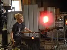 Smeltet glasspiral påsættes foden af vinglas i Bergdala