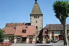 Bergheim med tårnet, hvorigennem byporten går.