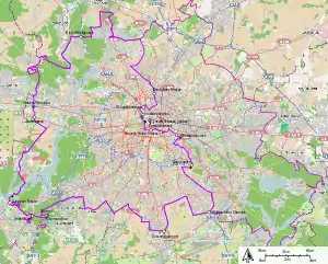 ![]() Kort over Vest-og Østberlin, grænseovergange, metro-netværk.[1]  | |