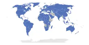 Lande (i blåt) der har tiltrådt Bernerkonventionen