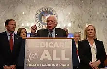 I september 2017 introducerede Sanders, med 15 senatorer, inklusive Elizabeth Warren fra Massachusetts, Kirsten Gillibrand fra New York og Cory Booker fra New Jersey, som co-sponsorer, sit Medicare for All-lovforslag, en plan for statssponsoreret sundhedspleje.[107][108] Nogle Republikanere har nedladende kaldt Sanders' lovforslag "Berniecare" - et spin på Barack Obamas "Obamacare". Sanders svarede med, at det Republikanske Parti ikke har nogen troværdighed på sundhedsområdet efter at have stemt for lovgivning, der ville tage sundhedspleje væk fra 32 millioner amerikanere under the Affordable Care Act.[109]