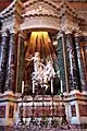 Under pave Urban 8.s pontifikat (1623-1644) var Bernini Roms mest eftertragtede kunstner, og han fuldførte sammen med assistenter og elever en mængde opgaver i Peterskirken, blandt andet højalterets 20 m høje baldakin med snoede søjler. Står man med ryggen til kirkens indgang, ser man i øjenhøjde på søjlen til venstre et kvindeansigt. Går man rundt om baldakinen med uret, ser man også hendes ansigt på de to næste søjler, mere og mere fortrukket af smerte som under en barnefødsel, men på den fjerde søjle afløst af et smilende spædbarnsansigt. Kvinden var en niece af Urban 8. der fødte, mens Bernini arbejdede med baldakinen.[1]