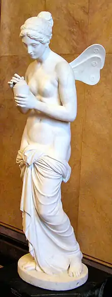 | Thorvaldsen har næppe været helt blind over for sensuel udstråling. Faktisk var han kendt som damernes ven. Da han døde i 1844, da efterlod han sig en betydelig privat samling af udpræget erotisk kunst, som blev gemt væk i museets magasiner efter hans død, og som stadig den dag i dag ikke kan ses af museets gæster. Han tegnede selv adskillige erotiske motiver, men mange af dem blev desværre brændt, da man for alt i verden ville undgå at få plettet den store mesters renomme.[11] | ||