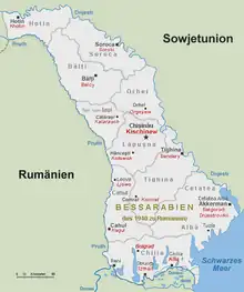 Området tilsluttedes Rumænien i 1918 efter en afstemning i det bessarabiske parlament, hvor 86 parlamentsmedlemmer stemte for tilslutning, 3 stemte nej og 36 stemte blankt.[2] Sovjetunionen godtog aldrig denne afstemning og krævede en rigtig folkeafstemning, som ikke har fundet sted.
