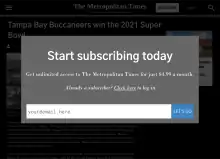 I 2010, fulgte avisen The Times (London) med og oprettede en betalingsmur, en beslutning, der dengang var kontroversiel, da The Times, i modsætning til The Wall Street Journal, er et generelt nyhedsmedie, og det blev sagt, at i stedet for at betale, ville brugerne søge gratis informationen andre steder.[2]