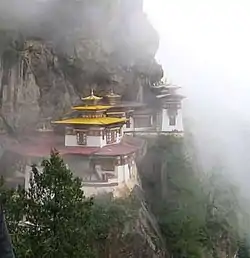 To bygninger, som tilskrives den halvt legendeagtige tibetanske konge Songtsen Gampo, er daterede til år 659. Det er Kyichu i Paro og Jambey i Bumthang. Ikke desto mindre er det normalt påstået, at buddhismen kom til landet med et besøg af den buddhistiske mester Padmasambhava (eller Guru Rinpoche) i 700-tallet. To steder i Bhutan er knyttede til begivenheder i Guru Rinpoches liv: Taktshang som hænger på en klippe over Paro-dalen, og Kurjey Lhakhang i Bumthang.