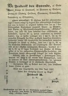 Oprettelsen blev godkendt af Kong Frederik den Syvende ved kongelig konfirmation den 19. juni 1857 på Jægerspris Slot. Bikuben blev i konfirmationen omtalt som en "Sparre- og Præmie-, samt Børne- og Alderdomsforsørgelsesforening".