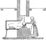 En tilsvarende ovn, der indfyres fra samme rum, hedder en vindovn.