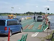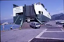 I den anden ende af spektret findes store skibe med flere bildæk – altså "etager", der er beregnede parkering under overfarten. Enten på skibet eller på kajen, er der så opstillet en eller flere landgangsbroer, der tillader køretøjerne at køre enten på eller af færgen, når den er i havn.