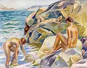 ![]() Kunstnergruppen De unga ved udstilling 1909. Den eksisterede 1907-11.[4] |