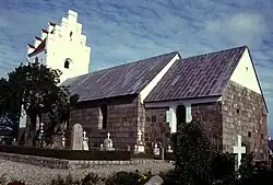 Kirken består af kor og skib fra romansk tid samt gotisk tårn. De romanske bygningsdele er opført af granitkvadre over skråkantsokkel, murværket er dog noget omsat. Syd og norddør er begge tilmurede. Norddøren har halvrundt tympanon.