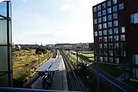 Kollegiet er bygget helt tæt på Bispebjerg Station.