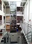 Bispen set indefra fra 1. sal, hvor det centrale rum ses tydeligt. Biblioteket ligger til venstre og modsat synsretningen er caféen.