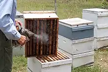 Biavleren kan tilsætte eller fjerne rammer efter bifamiliens størrelse, ligesom han fjerner rammer fyldt med honning. Honningen slynges ud af rammerne i en honningslynge.
