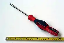 Magnetisk bitholder på skruetrækker med udklapbart magasin.