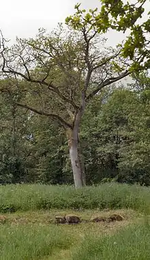 I kirketomten er plantet et egetræ ved hvis fod ses rester af kirkens fundament