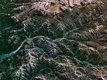 Andeskæden ved positionen 70° vest, 35° syd. Fotograferet fra en NASA-satellit.