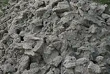 Blåler bragt op fra et dybt lag ved Århus Å. Leret er meget rent og finkornet ("fedtet"). Sprækkerne skyldes forvitring p.gr. af frost.