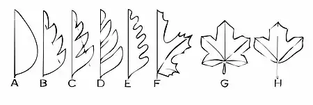 E: Bugtet, F: Håndfliget, G: Håndlappet, H: Trelappet