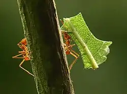 Disse myrer har arbejdere i flere størrelser. De største er soldater, de mellemstore arbejder med at skære blade, og de mindste arbejder inde i boet med rengøring.