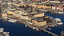 Turistbådene lægger til ved Blasieholmen. Det samme gør rutebådene til Vaxholm.