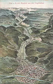 Blaudalen blev formet af Donau. Da Schwäbische Alb hævede sig, gravede Donau sig dybere og dybere ned i dalen, men endte efterhånden i et leje som gik længere mod sydvest. I dalen, som blev tilbage, flyder Schmiech sydover og møder Donau i Ehingen og Blau løber østover til Ulm.