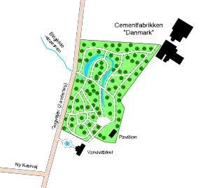 Slutningen af 1800-tallet var præget af en stor byggeaktivitet, hvilket lagde grundstenen for etableringen af Portland Cementfabrikken "Danmark" i 1898 klods op ad lystanlægget Blegkilde. Cementfabrikken blev i praksis i 1904 lagt sammen med den store konkurrent F.L. Smidth & Co. i Rørdal, som førte til etableringen af Dansk Eternit-Fabrik i 1927 i tilknytning til cementproduktionen.[9] Efterkrigstidens byggeboom førte til et øget produktion på eternitfabrikken, og i slutningen af 1959 kunne fabrikken præsentere en udvidelse til op til 40 mill. kr. (ca. 517 mill. kr. i 2018). En forudsætning for, at denne udvidelsen kunne realiseres var, at kommunen skulle afstå lystanlægget.[10] Som en kompensation for afståelsen ville kommunen modtage størstedelen af det areal, der ligger mellem Østerå, Sønderbro, Ny Kærvej og Østre Allé (der på dette tidspunkt ikke var anlagt).[11] Dette område var tidligere blevet nævnt som et fremtidigt grønt område, når der ikke længere blev gravet ler ved Kjærs Mølle.[10]