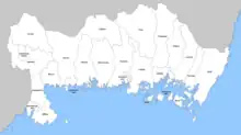 Kommuner, regnet fra vest til øst, er Sölvesborg, Olofström, Karlshamn, Ronneby og Karlskrona.