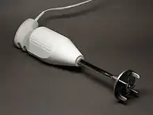 En anden type er en stavblender, der består af en stav med en roterende kniv i bunden, som man stikker ned i det, man vil blande sammen. Det, der skal blendes, befinder sig således i en skål.