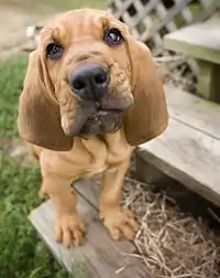 Blodhunden er ifølge sagnet opstået, da adelsmanden François Hubert efter sin unge kones død gik i kloster, hvor han viede sit liv til avl af hunde. François blev ophøjet til helgen, Sankt Hubertus, og er i særdeleshed kendt som jagtens skytshelgen, der fejres den 3. november med Hubertusjagt. Nogen litteratur fortæller, at blodhunden har samme stamfader som mastifferne. Men som følge af bevidst arbejde i franske klostre med at avle brugsegenskaber til jagt opstod der flere lokale varianter af drivende jagthunde. Sankt Hubertushunden var en af dem. Racen som vi kender den i dag må dog tilskrives England, som har udviklet hunden til den temmelig ekstreme, men hensigtsmæssige type den er.