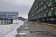 Bygningen var på fem etager og havde 64 lejligheder i længden på 231 meter.[4] Blok P lå i en østlig-vestlig retning. Blok P blev revet ned i 2012, og mange af beboerne blev genhuset i Qinngorput.[5]