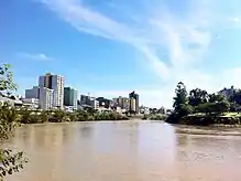 Centrum af byen Blumenau fra floden Itajai-Acu