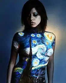 Et maleri af Van Gogh gengivet på en kvindes krop.