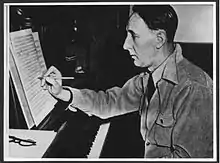 Bohuslav Martinů ved klaveret, hvor han arbejder på sin anden symfoni.