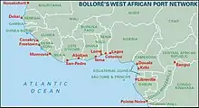 - "Bolloré Ports: Afrique (map)". Arkiveret fra originalen 12. marts 2022. Hentet 14. oktober 2022.