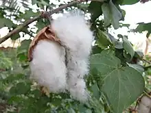 Ordet bomuld[4] betyder uld fra træer; men træuld[5] er vel at mærke noget andet. Første stavelse, bom, er det plattyske ord for træ, som på højtysk hedder Baum. Vi kender også den plattyske form fra det danske ord bom[6] om bjælke eller stang.