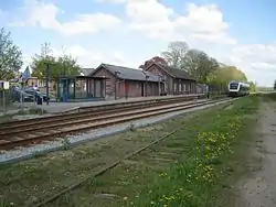 Stationsbygningen fra 1888 er tegnet af arkitekten N.P.C. Holsøe.[4]