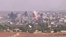 I efteråret 2014 indledte ISIL et omfattende angreb på kantonen Kobane (Ain al-Arab). ISIL erobrede hurtigt landsbyerne omkring og trængte ind i selve bykernen. Kurdiske styrker tilhørende partiet PYD gjorde desperat modstand og kæmpede fra hus til hus mod overlegne styrker. Forsvaret fik efterhånden hjælp fra amerikanske og franske fly, som bombede ISILs stillinger.