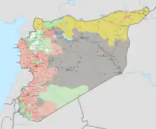 Regimet fik i løbet af sommeren 2015 betydelig politisk og militær støtte fra Rusland,[79] og 30. september fik Rusland tilladelse fra sin nationalforsamling til at gennemføre militære operationer i Syrien, kort efter bombede russiske fly de første mål.[80]