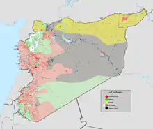 Langs grænserne mod Tyrkiet og Irak, og i de store byer, bor der mange kurdere (der bor skønnet 1-2 millioner kurdere i hele Syrien[74]). Kurderne har, sammen med turkmenere, kristne assyrere og sunni-muslimer, været undertrykt af Baath-regimet, som er baseret på arabisk nationalisme. Efter udbruddet af borgerkrigen bevilgede Bashar Assad syrisk statsborgerskab til ca 300.000 statsløse kurdere. Sommeren 2012 blev syriske styrker trukket ud af kurdiske områder i nordøst og kontrollen overladt til det kurdiske parti PYD, som er allieret med PKK i Tyrkiet.