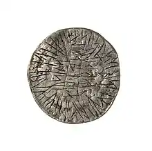 Bornholm-amulet er fremstillet af en arabisk sølvmønt med en runeinskription på latin. Amuletten er omkring 2,5 cm i diameter.