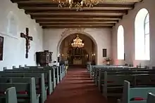 Fra middelalderen stammer den sydvendte granitportal samt døbefonten. Fonten er lavet i gotlandsk kalksten og er formodentlig blevet udført af kunstneren Calcarius fra Gotland. Den viser bl.a. scener fra Jesu barndomshistorie. Et af døbefontens relieffer viser en konge, som kan tænkes at have været kirkens stifter. Kongen gengiver så enten Knud 4. eller broderen og efterfølgeren Valdemar Sejr. Højalteret stammer fra 1686. Alteret er udført i barokstilen og udstyret med et større korsfæstelsesbillede. Prædikestolen er fra 1690, men den er kun delvis original. Af kirkens inventar kan desuden nævnes korbuekrucifikset fra 1500-tallet. Det nuværende kirketårn er fra 1893/1894, den tidligere kirketårn er fra 1500-tallet, men blev flere gange beskadiget. Den ældste gravsten på kirkegården er fra 1692.