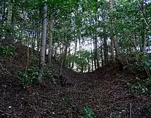 - «I skovområde er der lokaliseret en anseelig gravhøj tæt op af et flere meter dybt hulvejsystem nord-sydorienteret med kurs i syd mod Lellinge Kirke. I den nordlige del deler vejen sig med retning mod øst og nord.»[20]